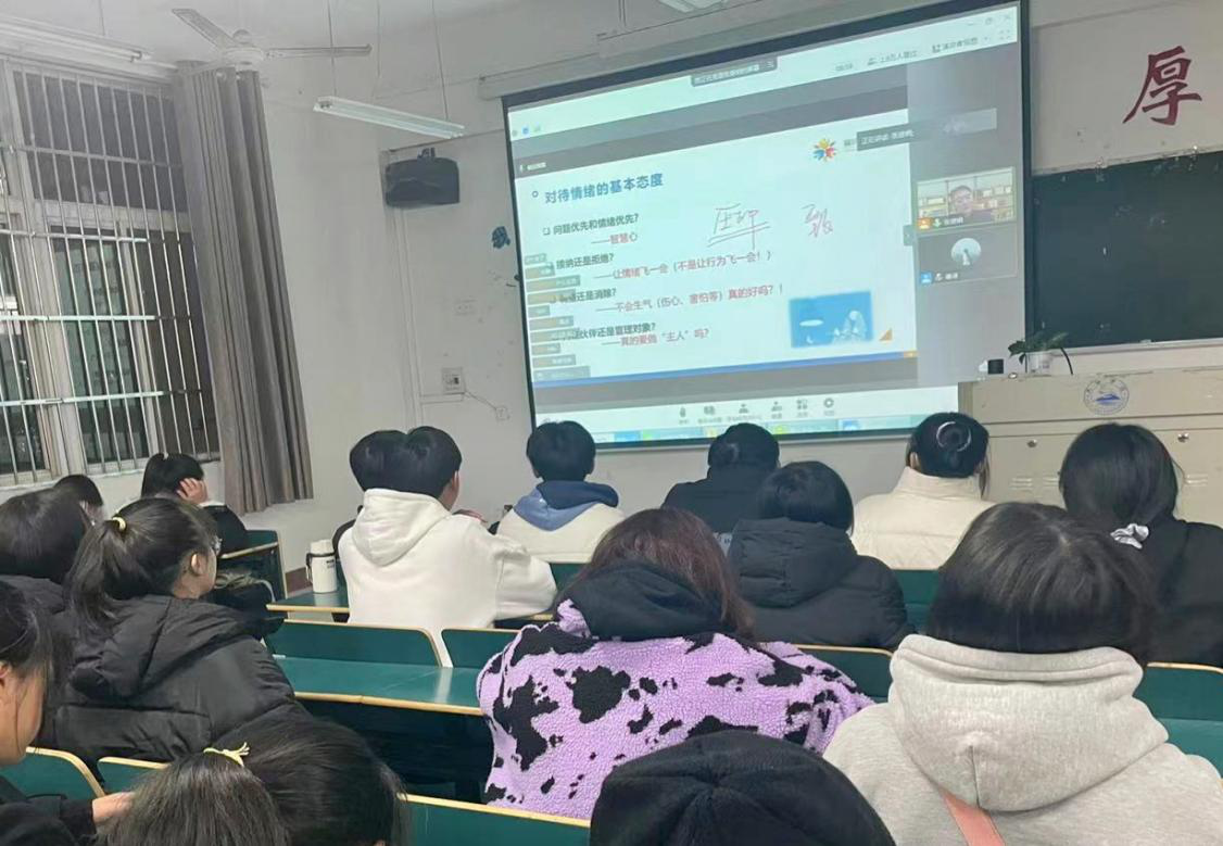 为普及心理知识,加强学生自我情绪管理,12月7日晚,太阳成集团tyc9728于义丰楼教室组织观看了心理公益网络直播课。本次课程由江西科技师范大学心理健康教育咨询中心承办,北京师范大学张继明副教授主讲,太阳成集团tyc9728全体大一新生观看。