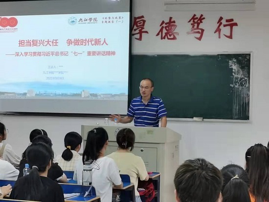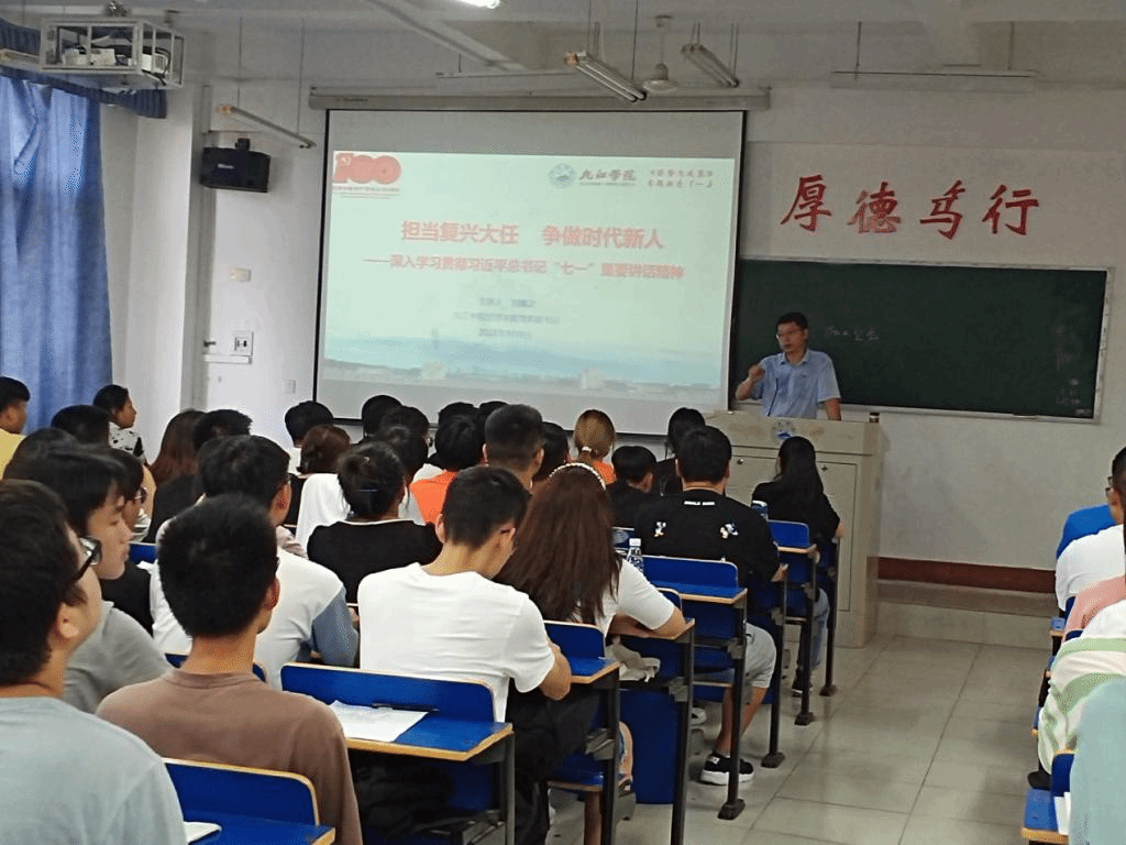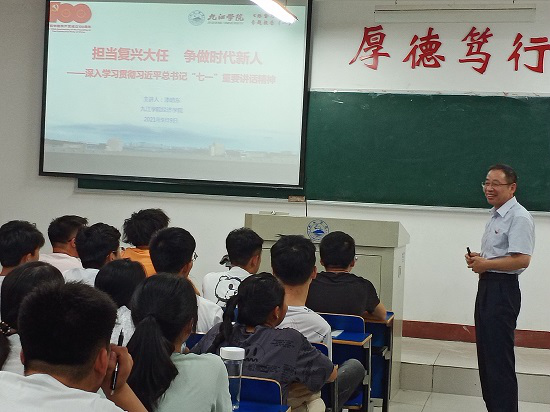 9月9日,在2021级新生刚刚报到入学之际,学院院长项益才、党委书记漆晗东、副书记刘羲之、副院长李华分别走上讲台,围绕学习贯彻太阳成集团tyc9728总书记“七一”重要讲话精神、树立远大理想等内容,给大一新生们讲授一堂生动的形势与政策思政课。