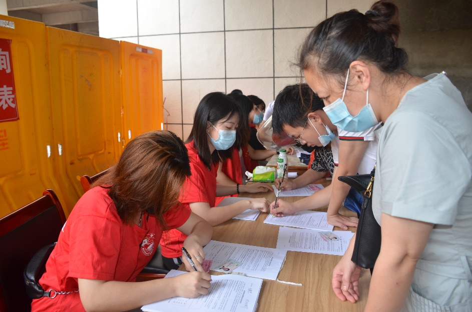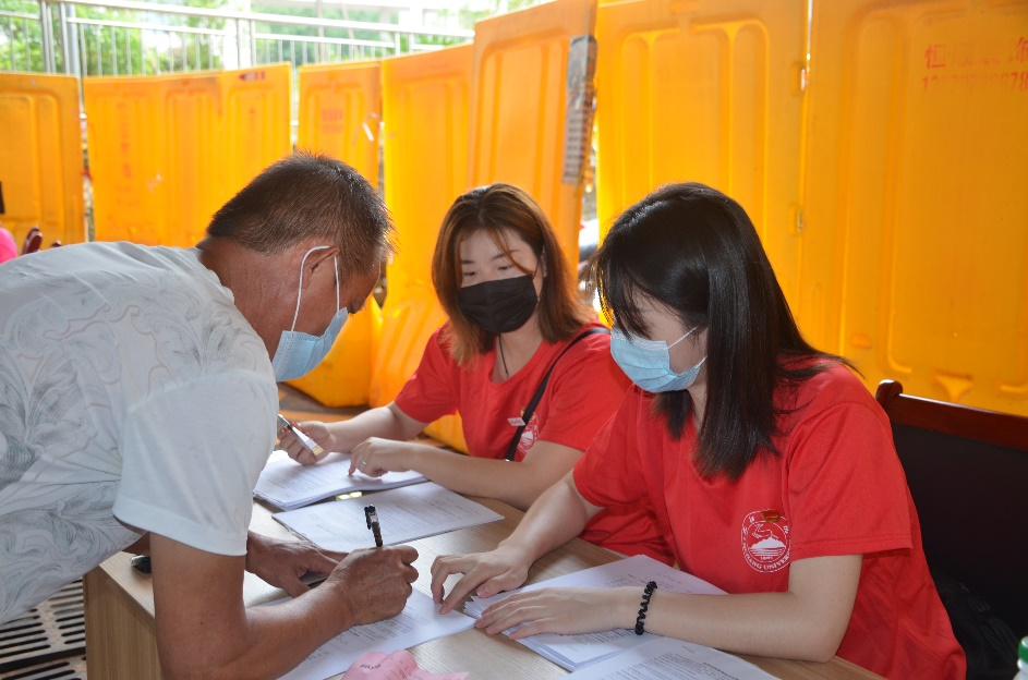 在相关人员的安排下,九江学院圆梦“金”夏社会实践服务队前往了共青城市人民医院,向社区志愿者以及医护人员了解了各个点的运行情况后,便根据现场的需求来到各个岗位,提供帮助。与此同时,队员们还利用空闲时间向广大群众大力宣传疫苗接种的重要性,帮助不会写字的群众填写表格,以积极耐心的态度为有顾虑的群众答疑解惑,科学地解释了接种疫苗的各项事宜,这也在一定程度上消除了群众对疫苗的误解和顾虑。在紧张、忙碌的工作中,新冠疫苗接种也在顺利、有序、高效地进行着。最后,所有医护人员以及志愿者、实践服务队等的努力加速了新冠疫苗接种的进程,让接种工作更好地落实。
