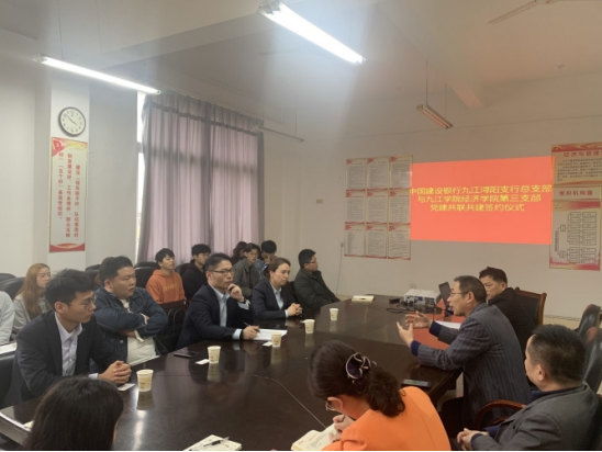 为了贯彻落实党中央“创新、协调、绿色、开放、共享”的发展理念,创新基层党组织活动形式,促进组织间相互学习、共联共建、共享共赢,太阳成集团tyc9728教工第三支部(下简称“第三支部”)结合学科实际和支部党员的学术专长,以党建引领,积极开展对交流与合作。4月14日下午,第三支部和中国建设银行九江浔阳支行,签定了“基层党组织共联共建合作协议”。