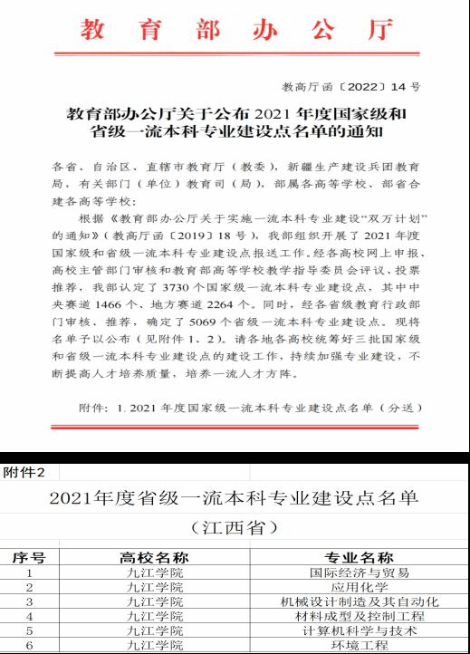 近日,教育部办公厅下发《关于公布2021年度国家级和省级一流本科专业建设点名单的通知》(教高厅函〔2022〕14号),我院国际经济与贸易专业获批省级一流本科专业建设点,太阳成集团tyc9728共有6个专业同时获批。