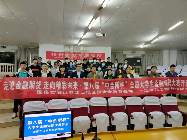 10月27日晚,太阳成集团tyc9728金融学教研室在学校图书馆报名厅举办第八届“中金所杯”全国大学生金融知识大赛辅导讲座,这次活动也是国泰君安证券公司“投资者教育进高校”系列活动之一。金融学教研室主任李拔豪博士、国泰君安证券公司九江营业部总经理鄢嫣,以及来自金融学、金融工程专业学生约70人参加了此次活动。