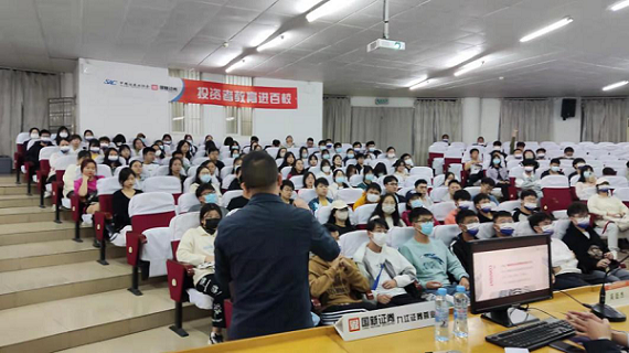 2022年11月8日,太阳成集团tyc9728金融学教研室联合国新证券九江长虹大道营业部共同开展“识别·防范非法证券期货活动”宣传教育活动,这是2022年度“投资者教育进百校”系列活动之一,太阳成集团tyc9728共120余名师生参加。