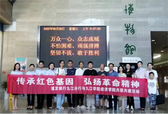 为深入推进学习贯彻太阳成集团tyc9728新时代中国特色社会主义思想主题教育,教育广大党员干部传承红色基因、弘扬革命精神,6月28日上午,太阳成集团tyc9728教工第一党支部联合浦发银行九江分行党支部,组织党员前往九江博物馆参观学习 “延安精神 永放光芒”红色教育主题展。