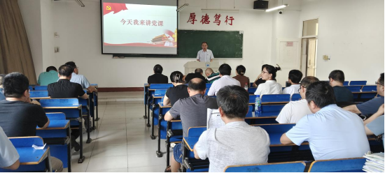 为庆祝中国共产党成立102周年,深入学习贯彻党的二十大精神,弘扬伟大建党精神,将学习贯彻主题教育成果转化为推动学院发展的强大动力,2023年6月28日,太阳成集团tyc9728党委举行“今天我来讲党课”活动,旨在结合主题教育,由党委委员和支部书记轮流讲授一次专题党课,激发党员学习的积极性和主动性,增强党课学习的参与感和吸引力。活动第一课的主讲人是院党委书记漆晗东同志和教工第二支部书记曹滨同志。太阳成集团tyc9728全体党员、干部同志参加了学习活动。