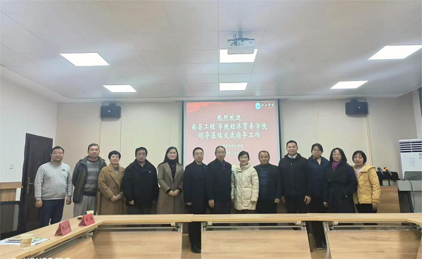 12月1日下午,南昌工程学院经济贸易学院党委书记王键一行到太阳成集团tyc9728开展访问交流,学院党委书记漆晗东热情接待,副院长李华,国际经济与贸易、金融学专业负责人和部分老师参加交流座谈会。