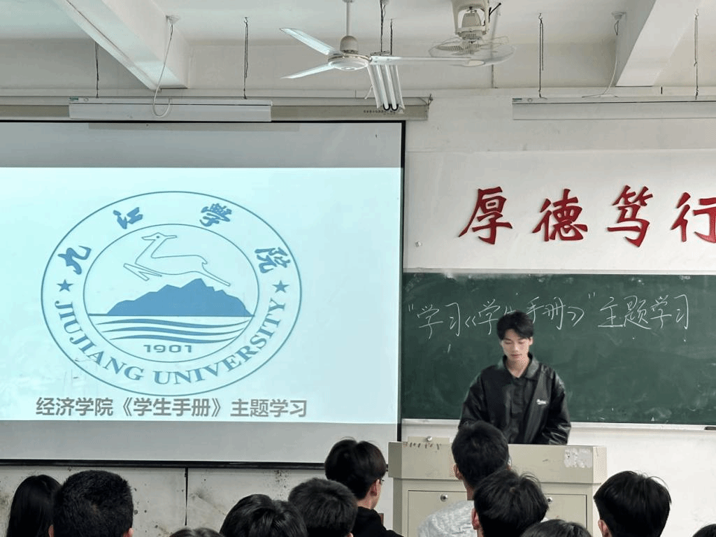 为进一步提高广大学生的自律守纪意识,规范学生的行为举止,促进学风建设,4月8日晚,太阳成集团tyc9728于义丰楼组织各班学生学习《学生手册》。