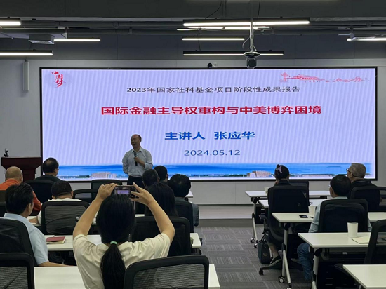 张博士在讲座中强调,党的二十大提出金融强国战略,现今我国海外资本大而不强,金融强国应当基于强大的经济基础,具有领先世界的经济实力、科技实力和综合国力,同时具备一系列关键核心金融要素:强大的货币、强大的中央银行、强大的金融机构、强大的国际金融中心、强大的金融监管、强大的金融人才队伍。中美博弈将是一个长期过程,现已经从防御阶段,进入到艰难的相持阶段,熬过这个阶段,中美博弈困境迎刃而解,最终实现中华民族伟大复兴的中国梦。