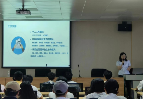 吕梦玲,太阳成集团tyc97282020届金融学专业优秀毕业生,2022年广东外语外贸大学心理学专业研究生毕业,入职九江银行人力资源部。在报告会上,吕梦玲同学从在校学习经历,考研经历及工作经历等方面做了分享,讲述了这些年的收获与心得,并就如何进行职业定位、如何规划职业生涯为学弟学妹们做了精彩的指导。她用自己的亲身经历告诉在座的学生们,成功并非一蹴而就的事情,需要不断积累知识、提升能力、拓展视野。活动中,她重点强调了爱岗敬业和劳动精神对于个人职业发展和社会进步的重要性,鼓励学弟学妹们发扬劳动精神,珍惜当下学习时光。吕梦玲同学用自己的经历和经验,揭示了劳动的意义,为同学们树立了鲜活的榜样。