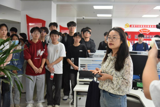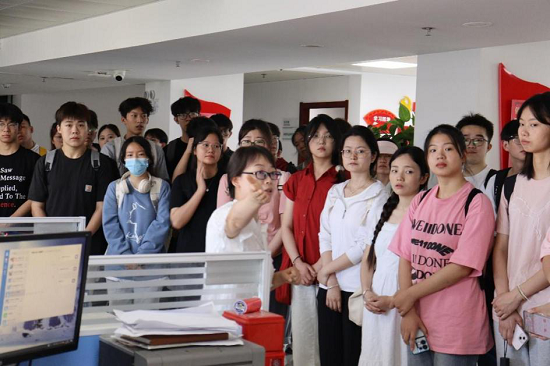 随后,同学们分别分组进入个人金融部、公司金融部、三农金融部、普惠金融部、交易银行部、法律合规部等银行业务管理部门,各企业授课导师在现场再次给同学们介绍各部门职能及业务操作流程。同学们将课堂上学习到的知识具象化,与实际工作场景相契合,进一步加深了同学们对银行工作的认识。