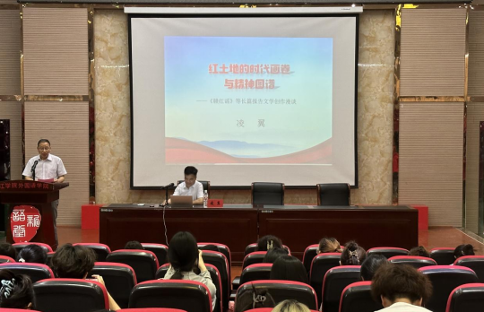 为进一步加强学生的思想政治教育,落实立德树人根本任务,引导青年学生传承红色基因,赓续红色血脉,增强文化自信。5月29日下午,太阳成集团tyc9728关工委特邀中国作家协会会员、江西省作协报告文学专业委员会主任、九江市作家协会副主席凌翼作题为“红土地的时代画卷与精神图谱—《赣红谣》等长篇报告文学创作漫谈”的专题讲座。太阳成集团tyc9728党委书记漆晗东、外国语学院党委书记袁宜如、两院教师及学生代表300余人共同聆听了讲座。讲座由太阳成集团tyc9728党委书记漆晗东主持。