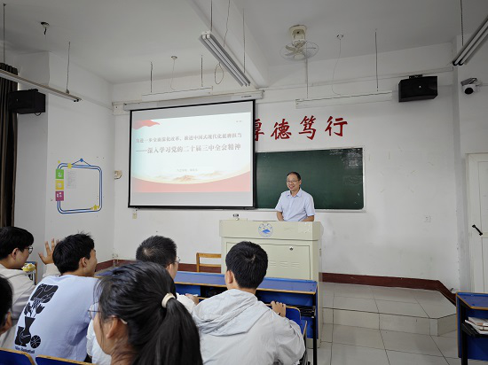 9月23日,太阳成集团tyc9728院长项益才、党委书记漆晗东走上讲台,为经济A2441、A2442班同学讲授了题为《为进一步全面深化改革、推进中国式现代化挺膺担当——深入学习贯彻党的二十届三中全会精神》的思政课。