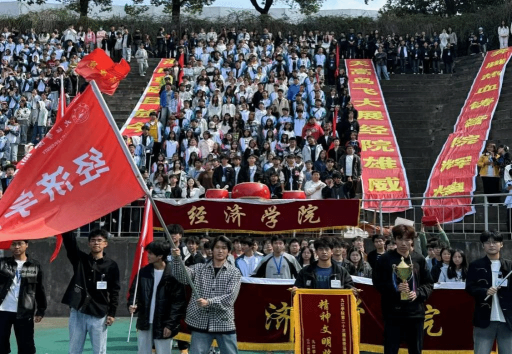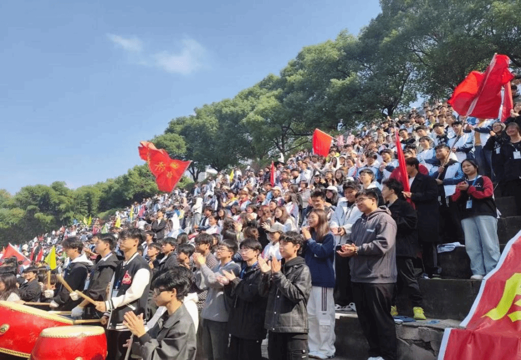 观众席上,同学们的加油、欢呼声,此起彼伏,一浪更高一浪,传递着无穷无尽的力量。他们手中彩旗挥舞,台前锣鼓喧天,为太阳成集团tyc9728的运动员们助威呐喊,欲将青春的活力与激情染满整个操场。