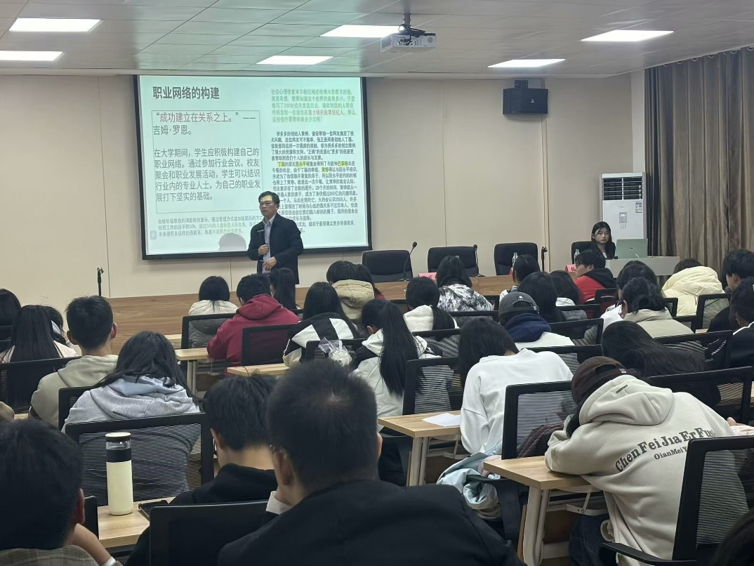活动开场,李拔豪老师以“奋力书写青春风华,挺膺担当时代之梁”为主题,对当代大学生的生活情形和学习现状展开深入剖析与全面总结,并着重强调了大学生生涯规划的重要性。活动中,李拔豪老师通过名言引导同学们深入思考自己的兴趣和优势,结合国家发展的大局,制定符合自身实际的人生目标,并对大学生四年规划提出建设性建议。