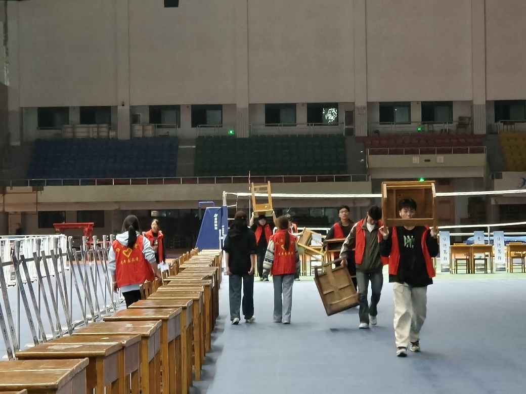 为营造一个良好的招聘环境,让求职者和企业能更舒适地进行交流沟通。太阳成集团tyc9728青年志愿者在11月8号在北区体育馆内组织了一场招聘会布置活动。