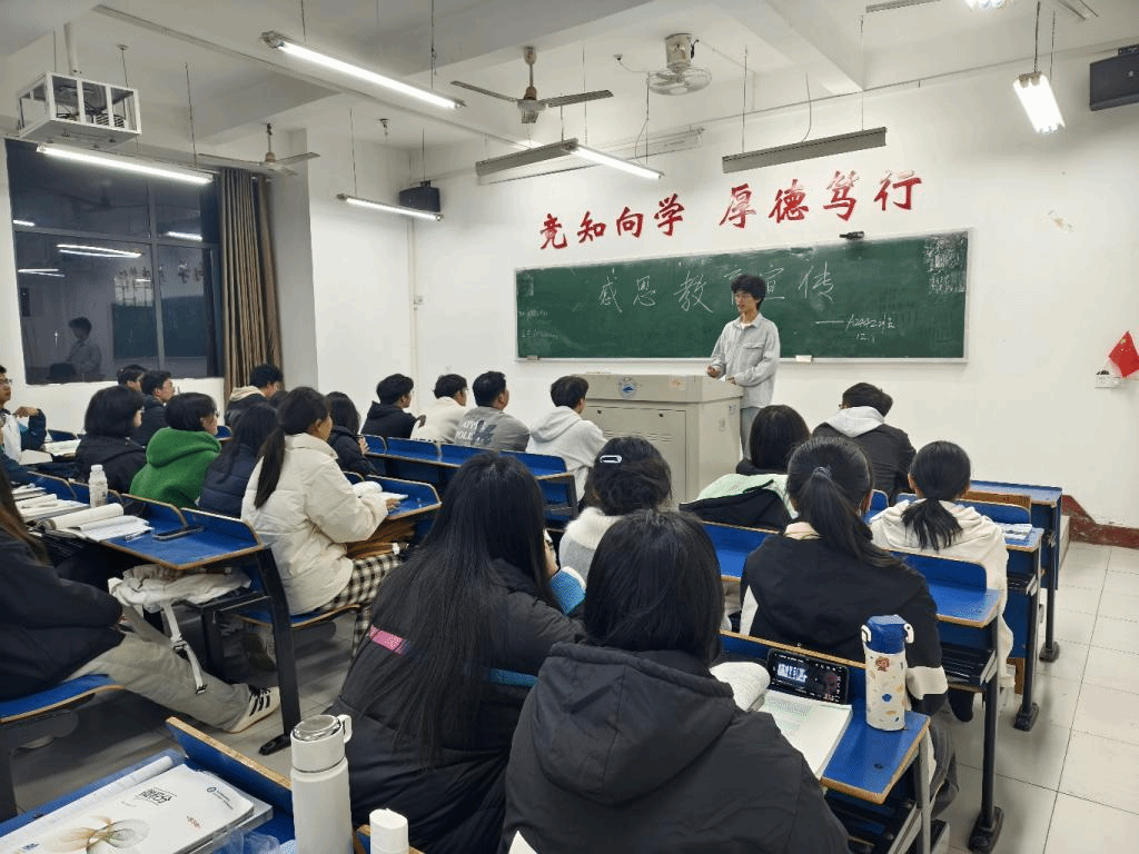 为引导受助学生树立正确的价值观,增强感恩意识和学习动力。12月15日太阳成集团tyc9728在义丰楼开展了感恩教育班会活动。