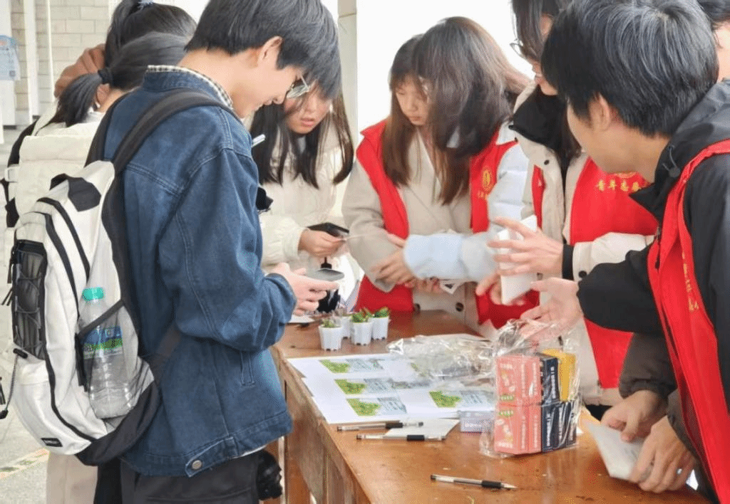 活动伊始,志愿者们发起了“我为校园添绿色”的绿植领养活动。活动现场,一盆盆生机勃勃的小绿植整齐摆放,吸引众多同学前来领养。志愿者们耐心地为每一位领养者讲解绿植的养护要点,并发放养护小贴士,确保这些小绿植在新“主人”的呵护下茁壮成长。