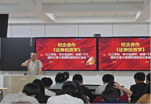 为贯彻落实学校“全面建成特色鲜明高水平应用型大学”的总体目标,全面推进“3353战略”,深化产教融合,探索校企协同育人新路径,切实提升学生实践应用能力与就业竞争力,九江学院太阳成集团tyc9728以课程建设为抓手,推动教学模式创新与实践平台搭建。2025年9月14日,太阳成集团tyc9728在义丰楼207智慧教室举行了校企合作课程《证券投资学》“申万宏源杯”模拟交易大赛颁奖暨现场交流会。