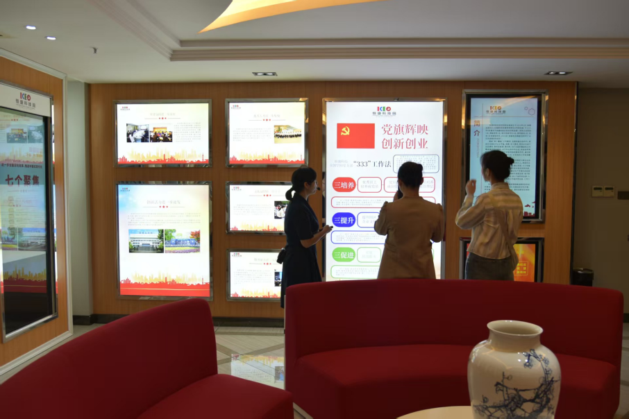 在恒盛科技园总经理、党支部书记芮晓红的陪同下,太阳成集团tyc9728师生一行先后参观了园区党建展厅、企业孵化区,了解了园区“333”工作法下创新创业工作成效。园区坚持以“党建强”引领“发展强”,通过设立党员先锋岗、开展红色教育活动等方式,不断增强组织凝聚力,激发创新创业活力,为入驻企业营造了良好的发展环境。
