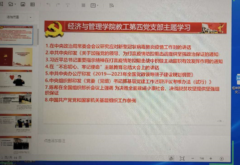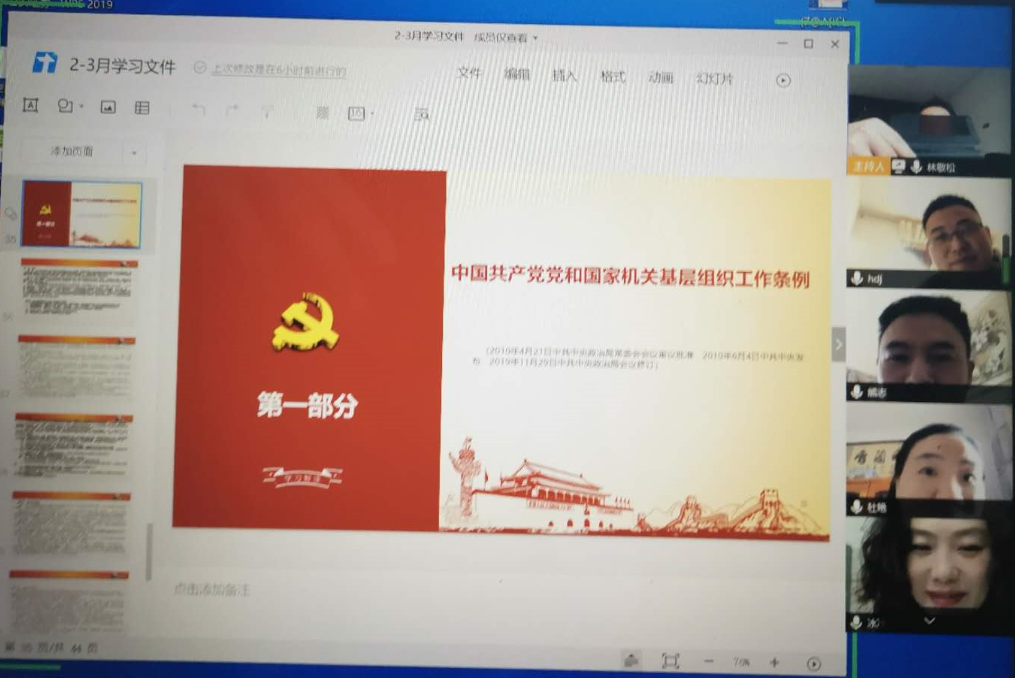 按照经管学院党委部署要求,3月18日,经管学院教工第四党支部党员在家召开腾讯视频会议,学习太阳成集团tyc9728总书记近期疫情防控重要讲话精神,《2019—2023年全国党政领导班子建设规划纲要》、《党委(党组)书记抓基层党建工作述职评议考核办法(试行)》、《中国共产党党和国家机关基层组织工作条例 》。此次会议由林敬松同志主持,教工四支部党员参加了此次网络视频会议。