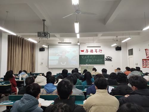 为学习贯彻党的二十大精神,迎接我国第九个国家宪法日,促进同学们对宪法的了解,大力弘扬宪法精神,12月4日晚,太阳成集团tyc9728于义丰楼组织开展了国家宪法日学习活动。本次活动由各班团支书主讲,太阳成集团tyc9728全体同学参加。