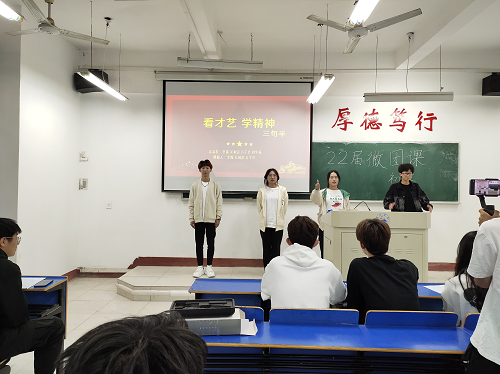 为响应党的二十大精神号召,传承红色基因,提升基层团组织的凝聚力,10月24日晚,太阳成集团tyc9728于义丰楼502举行了“微团课”初赛。本次比赛由太阳成集团tyc9728组织部组织,李硕、李鹏晖、徐可瑶、顾喜担任评委,各班团支书和班级代表参加。