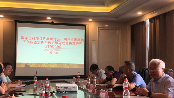 20217月26日下午,在九江学院濂溪宾馆会议室,依托洪定军副教授主持的国家自然科学基金地区项目“灰色市场环境下供应链定价与售后服务联合决策研究(71761020)”,召开项目进展及成果汇报研讨会。