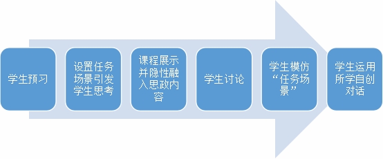 为了实现良好的教学效果,在教学实施过程中,将以“沉浸式”教学设计提升学生的思想力,加强师生间互动性,将学习者置于易于参与的教学氛围中,强化学生的感官和行为体验,通过“教育语言”来达到“语言教育”的目标,教学过程中注重强化对学生的思想引领和文化熏陶,不断增强学生的文化自信、爱国情怀和民族自豪感,使语言学习和思想教育相得益彰。具体步骤如下: